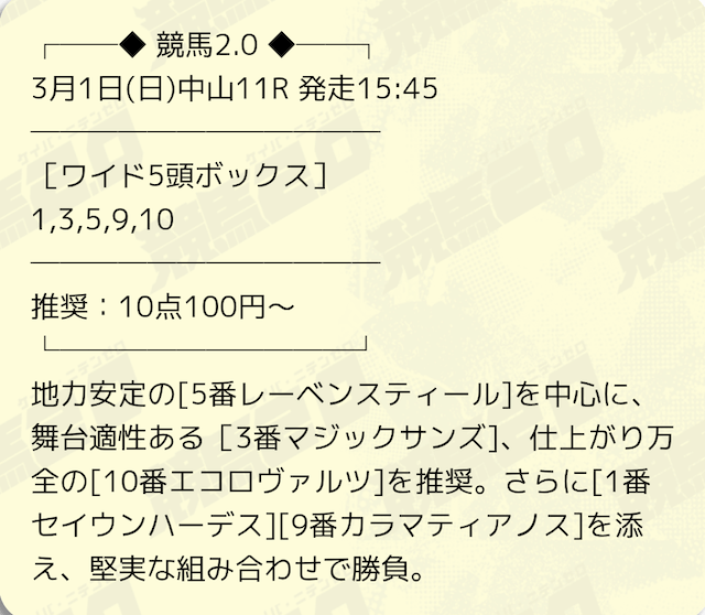 無料予想は安定感を重視している分、高配当への期待値は低め。