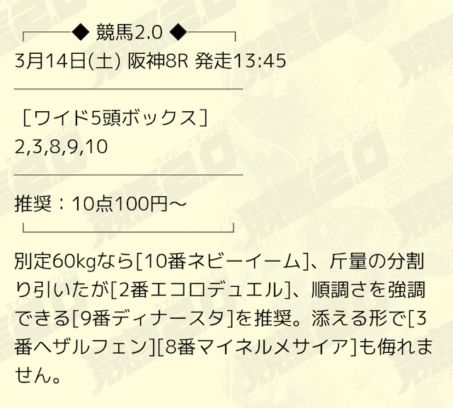 外れたときは条件付きだけど馬券代の保障もあったので、安心感あるサイトでした!有料予想に参加したら、4万馬券2連発。
