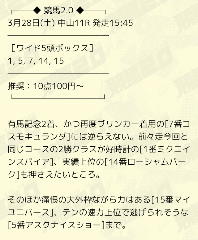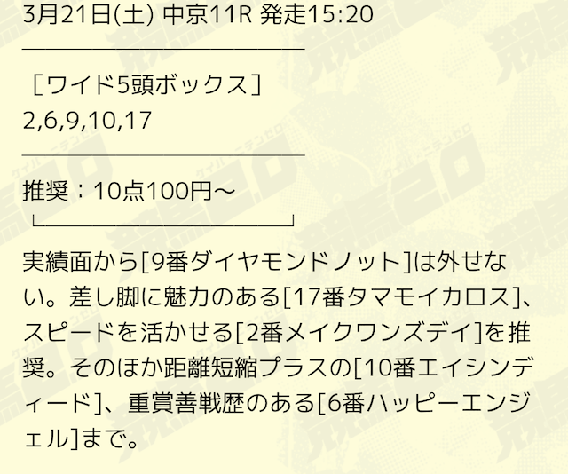 的中率高すぎw無料予想ながら、重賞レースを的中させているとの口コミも。