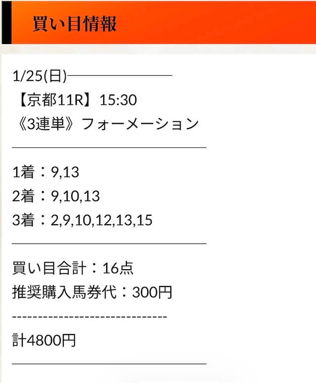 私が買ったプランは複数で、ほとんど全滅でした。これはネガティブな事実です。しかし、1つ、かなり大きな配当を的中してもらったのも事実でこれはポジティブなので、フェアな事実として今回は記載しました。なので、プラン選定は難しいですが、でかいのを当てる力はあります。